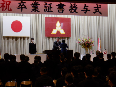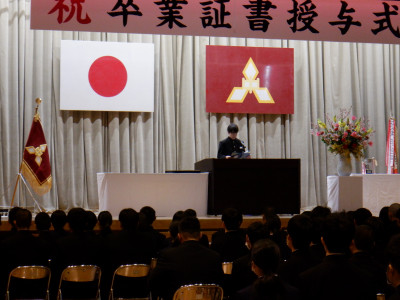厳粛な雰囲気の中、卒業証書授与式が行われました。祝辞や送辞、生演奏の中での答辞なども熱い思いが伝わり、聞いている者の涙を誘いました。また、記念合唱やメッセージも精一杯の声で、一緒に歌い声を出せることが最後への各自の思いが伝わってきました。
