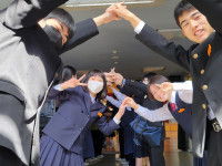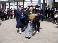 学級活動後に外で下級生の見送りがあり、その後卒業生と保護者、教職員で3年間を振り返りながらの記念撮影や、円なっての合唱などがありフィナーレとなりました。