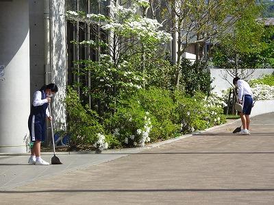 「即働」「黙働」「協働」「皆働」を清掃のキーワードとして、本当に全校生徒が一生懸命に掃除をしています。