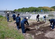 昨日、5,6,7組の生徒たちが、学校園作りをしました。