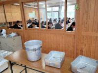 昨日から給食が始まり、今日も生徒たちは感謝しながら美味しそうにいただいていました。