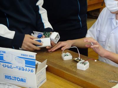 慎重にはんだごてを使いながら、ダイナモチューブライトを組み立てています。