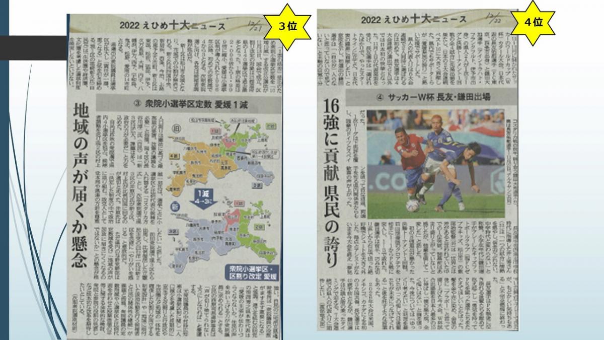 第4位 ワールドカップで、愛媛県出身の長友選手と鎌田選手が活躍 したことです。