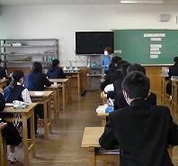 全校で大掃除の後、各教室で、TV放送による2年生代表の作文発表を行いました。堂々とした態度で2年生の反省と3年生に向けての決意を発表しました。