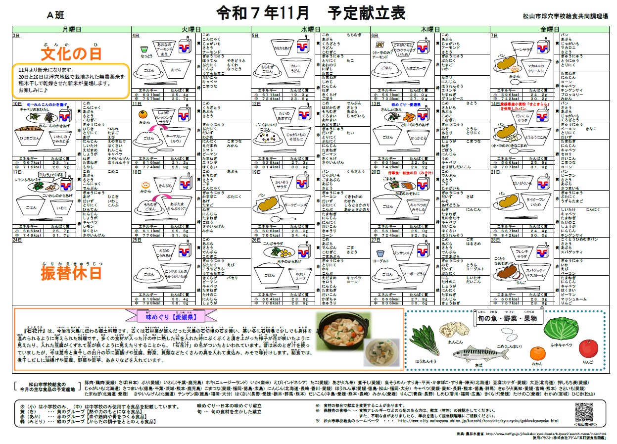 令和7年度給食11月 PDFファイルはこちら→R7.11月予定献立表.pdf