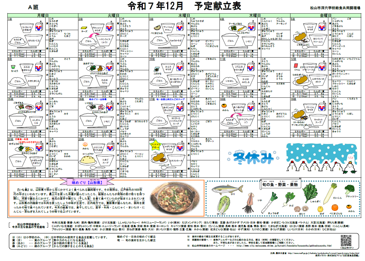 令和6年度給食12月 PDFファイルはこちら→令和6年12月分予定献立表.pdf