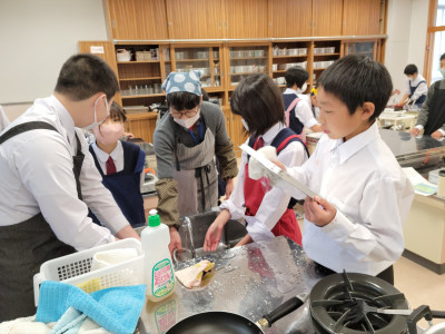 2023年12月1日 13時44分今日の午前中に1年生の技術科と家庭科の授業があり、技術科では本棚の製作で寸法を材料に書き込み、家庭科ではアジのムニエルを作りました❗ 家庭科は授業が終わる寸前の片付けの時間にお邪魔しました……残念😅 ただ、協力してきた時より美しくしていました。