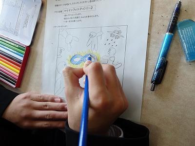 1年生が、クラス目標に沿った学級マークをスケッチしています。